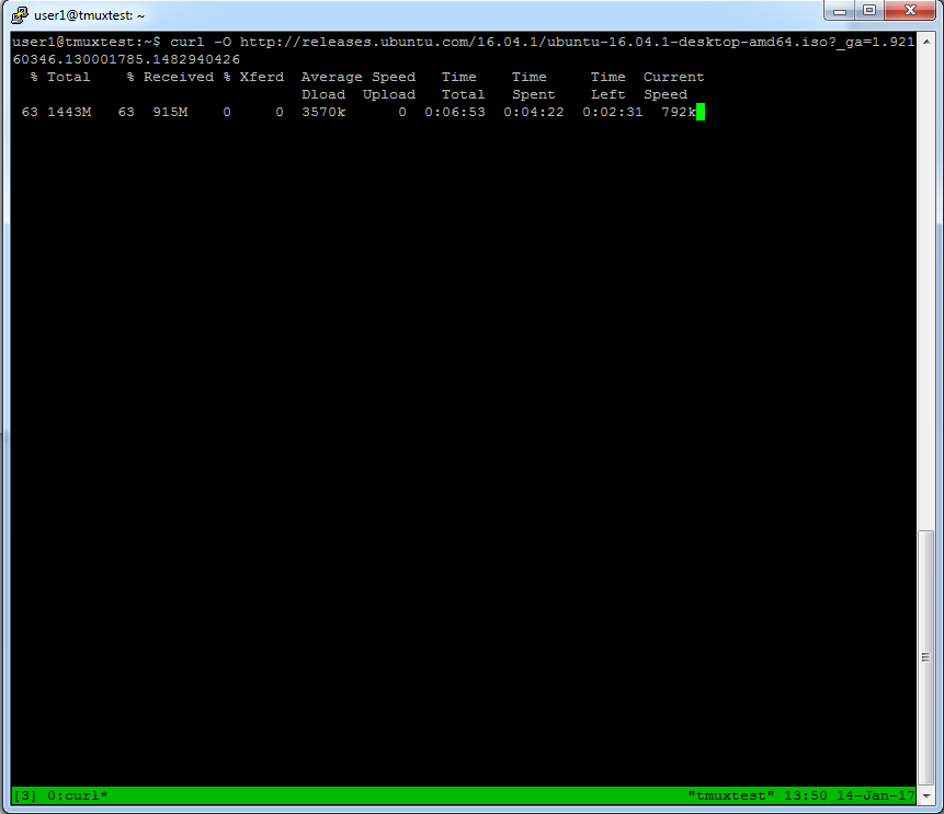 Well before I forget, remember that we’re in a session that I can attach and detach to.  Have you ever needed to start a download on a remote server and worried about losing your connection and having the download crash?  I have!  So why not run it in a session?  Simply start a TMUX session, start the download, and then detach from the session (Cltrl-b d)…