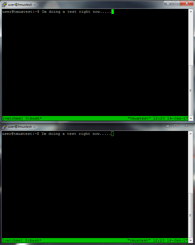 All the second user has to do is attach to that same session using the ‘tmux attach -t watchme’ command…