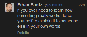A tweet that Ethan Banks (@ecbanks) sent yesterday sort of brought my thought process on blogging full circle…