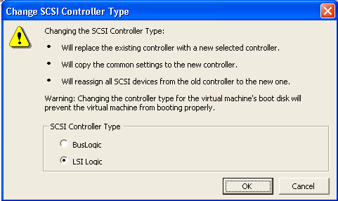 9 – On the next window, change the controller to ‘LSI Logic’ and click OK.