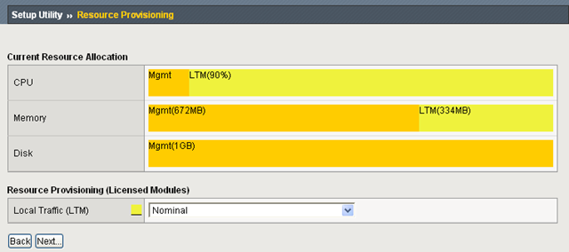 Since this is just a LTM you shouldn’t need to change the resource provisioning so just click ‘Next’.