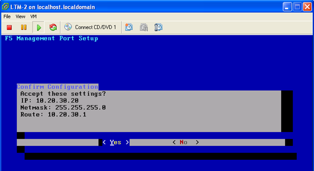 So since I started, I thought I could probably finish the rest of the setup of the LTM VE edition. If you followed the last post, you should have the box at the login prompt from your VMWare console view. The default credentials are root/default. Log in to the shell using the credentials and then type ‘config’ to configure the base IP of the LTM.