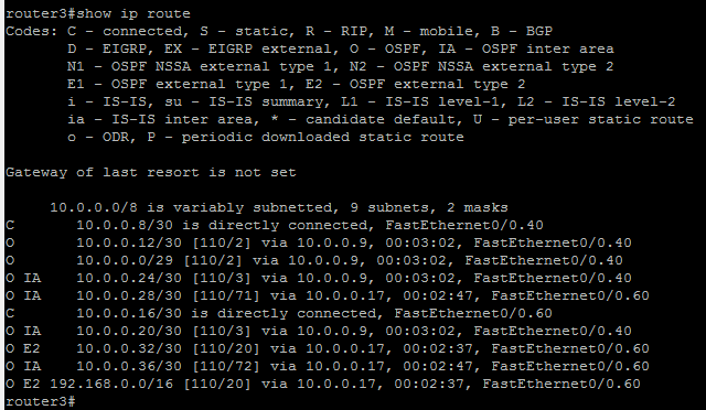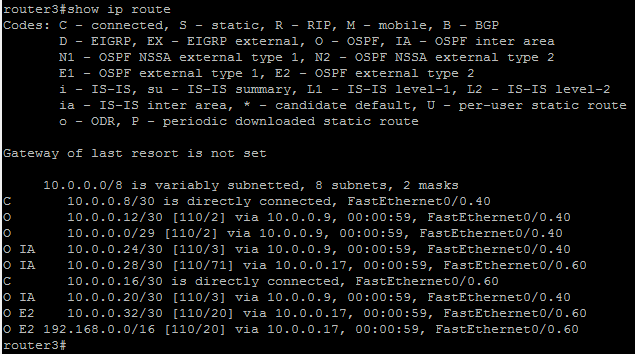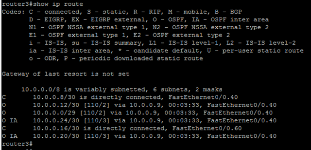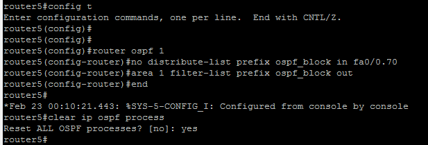 Here we apply the ‘filter-list’ command to filter the LSA entirely from even entering the backbone area. Then we clear the process to refresh the LSAs. Now, let’s check router3…