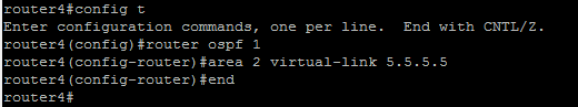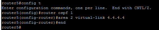 Basically you pick the two routers that will ‘terminate’ the virtual link, and configure one another to point to the other router’s RID for the virtual link.