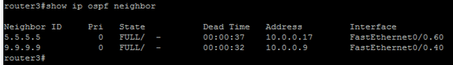 In this example, I’m configuring the ‘ip ospf <process ID> area <area ID>’ command under each of router3’s interfaces. I then remove the network statements from the router OSPF configuration. Once I clear the process, everything loads just the way it was…
